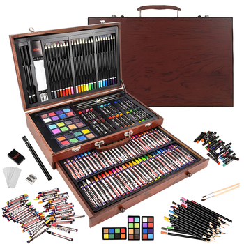 180Pcs Phòng Tranh Bằng Gỗ Hộp Trường Hợp Công Cụ Thiết Lập Vẽ Nghệ Thuật Bút Chì Thiết Lập Màu Nghệ Thuật Kit Set Cho Trẻ Em